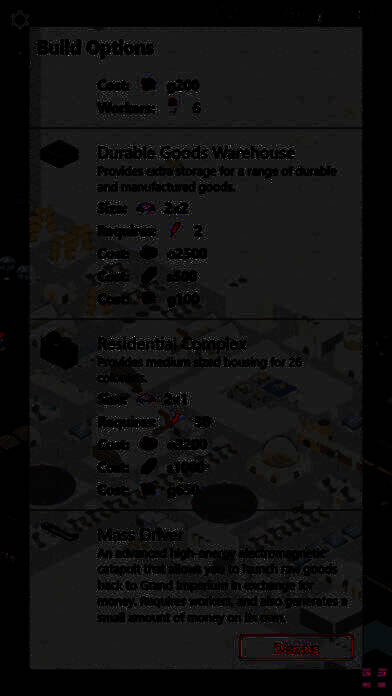 我的殖民地是不会,也永远不可能是其中的一个“故事”或“城镇”类型的应用程序游戏。这款游戏的目的是为了在经典的模拟城市游戏中采用未来派的风格。我不打算增加多人或敌人或类似的东西。我真的想把这个游戏放在临时的科幻模拟类中。