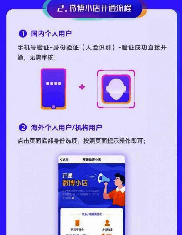 用户进入微博客户端,点击个人页的粉丝服务即可找到微博小店申请入口。国内用户通过手机号验证和人脸识别后,无需审核即可快速开通入驻,历史已入驻微博电商服务平台的用户则是默认开通微博小店,无需重复提交,海外用户点击页面底部引导进行基本信息填写即可。申请成功后,用户个人页将增加微博小店快捷入口。