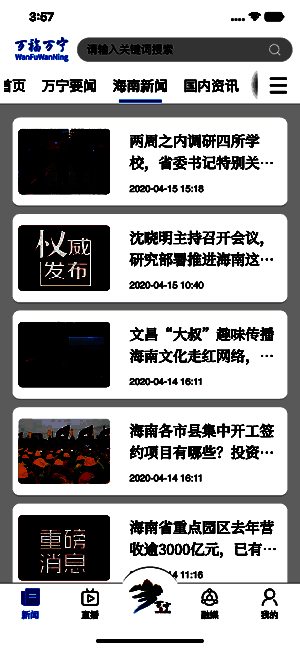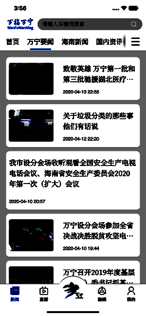 万宁新闻app是一个能展现当地新闻动态的软件,能轻松享受更为贴心周到的生活服务,各种新闻栏目都很全面,能给大家带来更为畅快的阅读体验,手机上看新闻热点会让你觉得很方便,喜欢的内容全部都能关注一下,各种高清的新闻直播也能在线观看!
