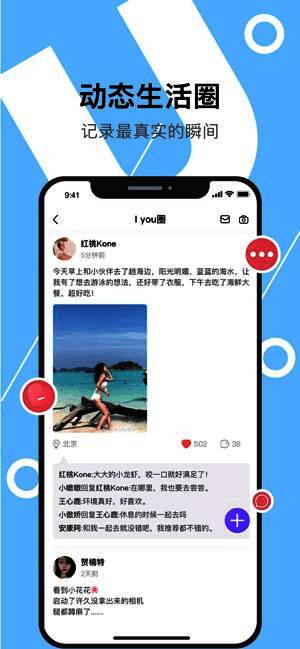 1、IYou这里面的交友非常的轻松,随便来玩来交友,界面上的交友有特别之处;
