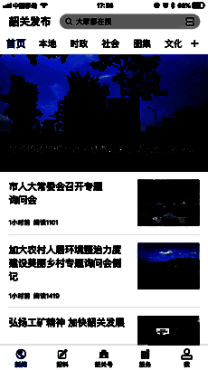 为了更好让大家听到韶关的声音,由当地的打造的《韶关发布》是一款非常不错的新闻资讯阅读平台。在韶关发布软件内,每天都有丰富的新闻资讯内容发布,韶关地方新闻资讯以及国内外的热点新闻事件,你想了解的在这里都能轻松的阅读的到!而且平台内还整合了丰富的便捷生活功能等你来体验,从此办理政务更方便!