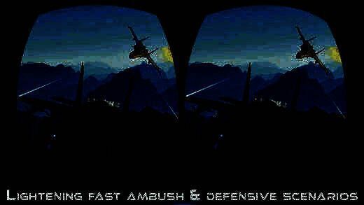 游戏的环境有一个独特的现实视图,基于实时的3D地图组成的高山和各种建筑物。这个VR游戏的主要和最好的特点是其令人惊叹的喷气式战斗机控制与dogfight追逐情景,以及其惊人的图形和声音创造真正的驾驶舱的外观和感觉。