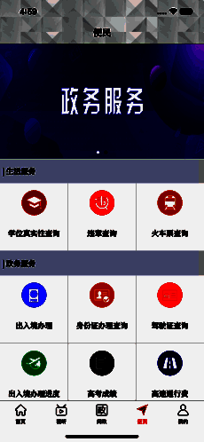 众多政务服务项目,如身份证办理查询、驾驶证查询、出入境办理等服务;