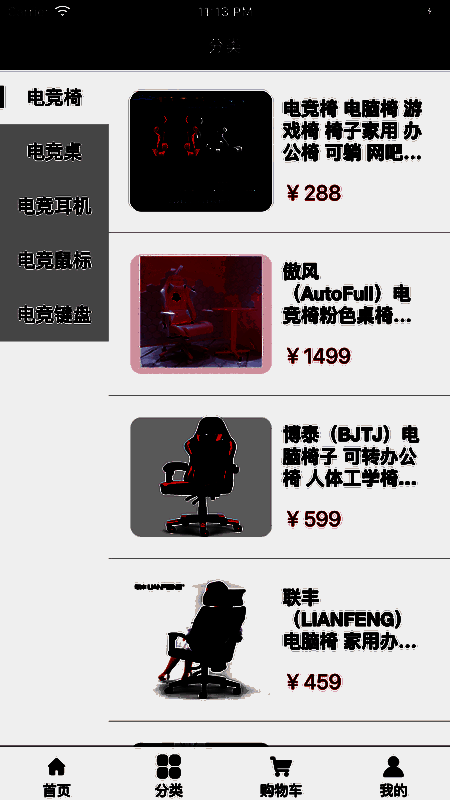 3、电竞商品分类详细,不管是关于座椅,还是游戏手柄、音响、耳机等都可随时下单选购;