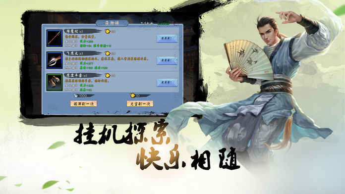 《江湖挂机传》是一款武侠题材的动作卡牌RPG,全新的江湖冒险,玩家将进入一个多姿多彩的世界,超多的武学随你选择,自由搭配,打造出你的专属角色,喜欢的玩家赶紧下载体验吧!