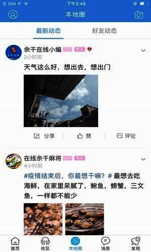 2、大家可以在平台上面发布生活动态和周边资讯,让大家本可以互动;