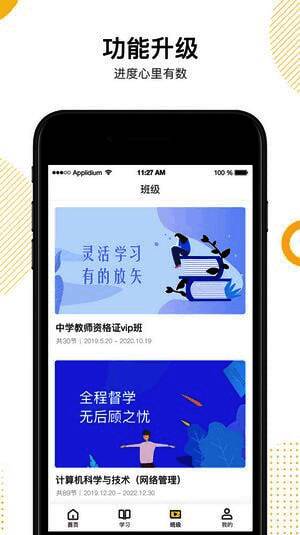 可以与老师实时沟通互动,收看直播课程,线上提问等;