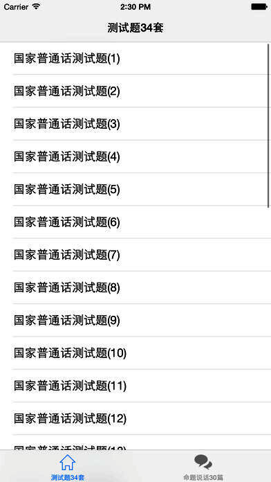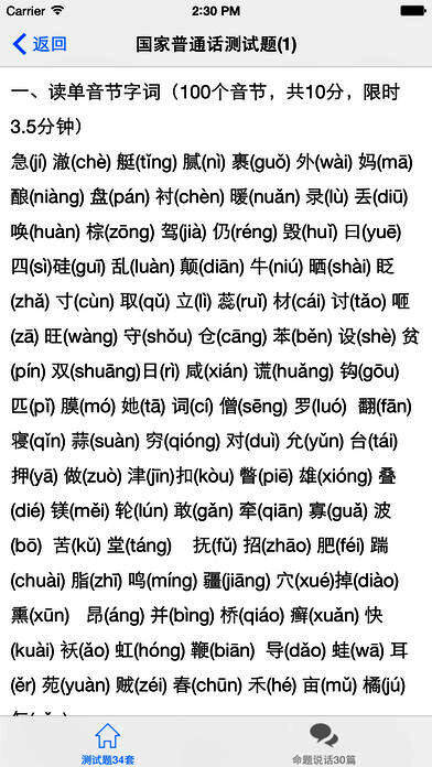 2、测试话题30篇和《普通话水平测试用话题》保持一致;
