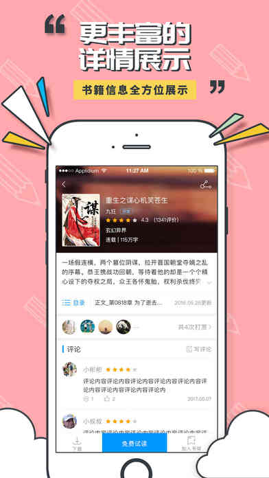 4、人性化阅读:舒适的阅读排版方式,多项阅读功能任你选。