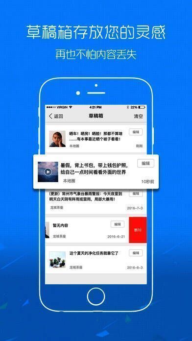 《平湖在线》是款生活服务类的软件;该软件通过使用了解到软件每天同步在线人数可达到10人左右;软件的页面风格以白色为主色调蓝色为副色调,给人一种很和谐的感觉,内置内容如草稿箱可永久存放你的稿件。