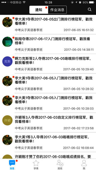 4、作业:每天都可以第一时间收到新鲜出炉的作业,还能跟同学比拼谁做的更快。