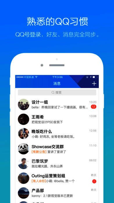 3、QQ号登录,好友、消息完全同步。