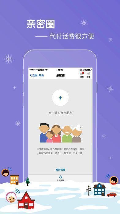 1、新增【亲密圈】:加入亲密圈,亲友话费流量即时查询、轻松代付;