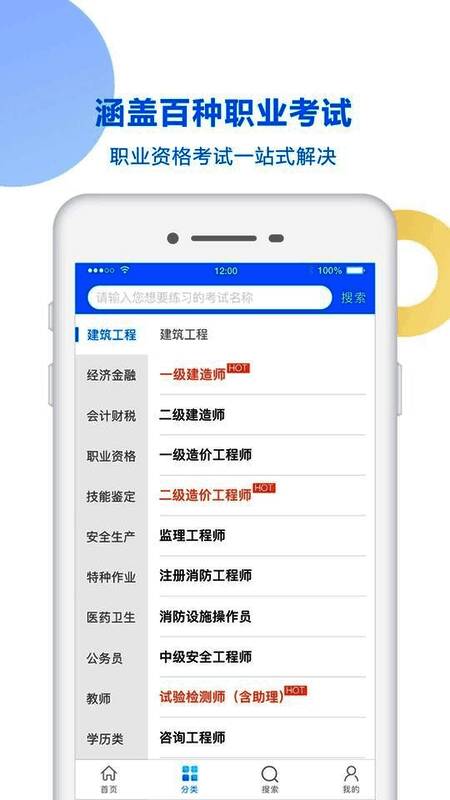 打开考试宝App后,用户可在首页输入关键词快速查找所需试题,系统会根据关键词精准匹配相关题目内容。选中一道试题后,用户可直接作答并查看系统给出的正确答案与解析,帮助巩固知识点。此外,App内设有“搜索”功能,支持按试题名称检索,同时下方还提供了热门搜索推荐,方便用户发现更多优质题库资源。