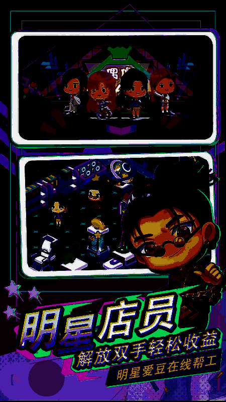 这是一个模拟的商业游戏,您可以在游戏中扩展和装饰您的店铺,以吸引更多的客人消费,同时,你还可以在游戏中收集和培训你的员工,甚至从其他世界招募名人作为你的员工。