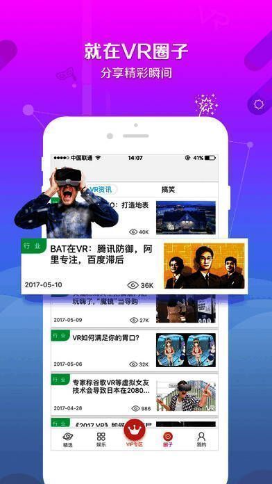 vr世界app是一款基于最新vr(虚拟现实)技术的精品vr资源聚合平台。拥有与vr相关的一切国内外最新好玩消息,超过1000个的vr游戏和数百个vr视频可供体验,每日不断更新中。更有私人定制功能,每天实时推送最新最全的vr资源,让你身处次世代娱乐大潮绝不OUT!