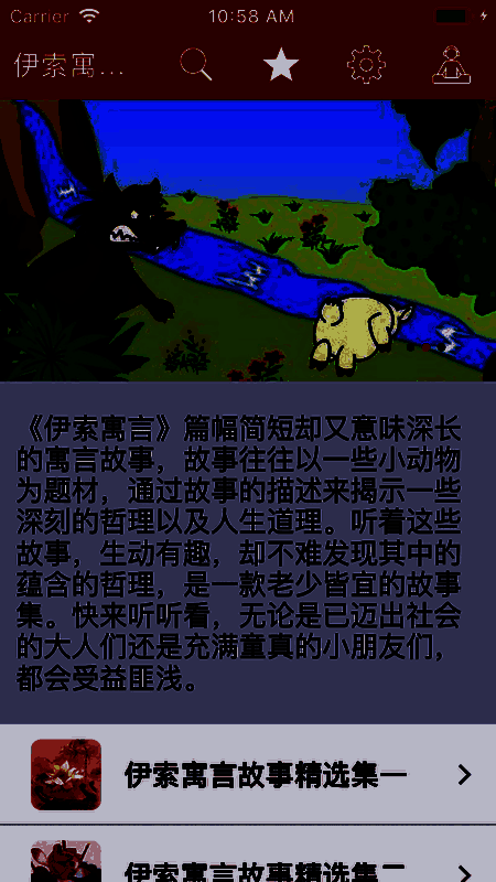 《伊索寓言故事》是一款历史悠久的世界闻名的故事集,在这款软件中,收录了全部的伊索寓言的故事,来为孩子们创造一个又或者深刻的寓意的伊索寓言的世界吧,每天都会更新最新的寓言的章节,为孩子们带来丰富的故事的合集,感兴趣的小伙伴赶快来下载体验吧!