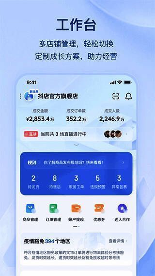 使用抖音小店APP,商家可以第一时间响应买家咨询,不错过任何转化机会。系统还会推送最新的平台规则更新、活动通知以及订单退款等重要信息。商品管理方面也十分灵活,支持上下架操作、价格库存调整及详情页编辑等功能。