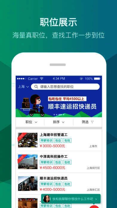 优蓝求职专注于蓝领招聘,求职,外出打工服务平台。在这里不用找中介,不会被骗,不用交钱,找工作方便,每天有大量招聘信息发布,工厂普工,技工,操作工,快递员,客服,销售等职位应有尽有,覆盖全国300多个城市,随时随地一键轻松找工作,并有求职顾问一对一专业服务。当天面试,快速入职。