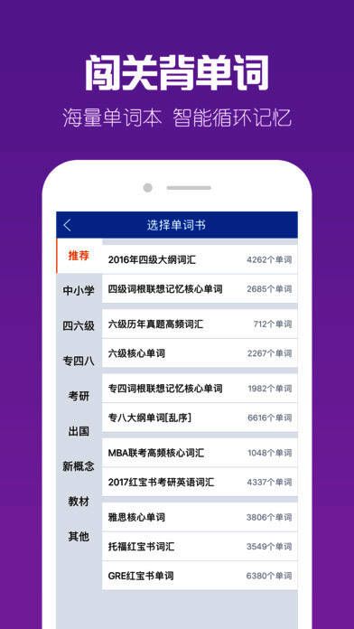 5、单词背诵:电脑手机同步进度,支持自定义生词本,背词闯关赚豆换礼品;