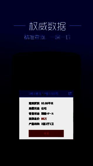 1、【权威数据】实时同步房管局数据,可按户型查看所有可售房源的面积、挂牌价和当前销售状态等数据,准确查询一房一价信息;