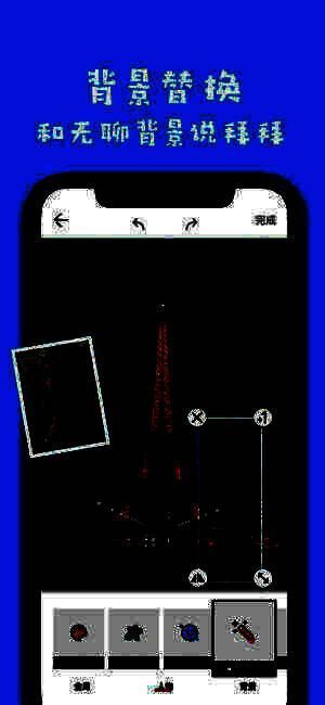 2、背景替换,一键抠图就可以随意更换背景图片,而且还可以加音乐文字等;