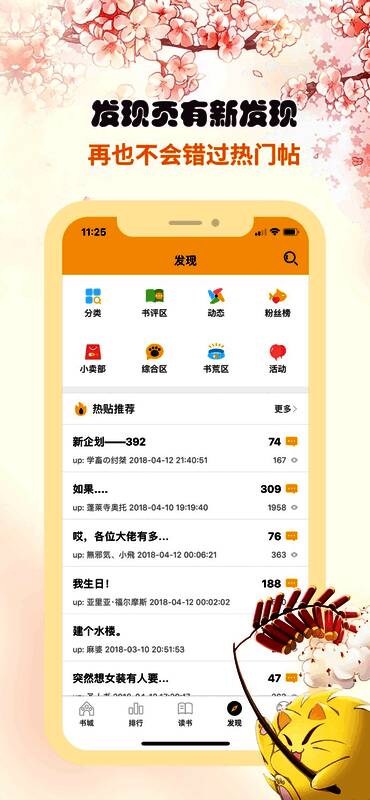 【发现】里面包含书评区、小卖部、讨论区等多个内容,此处以用户交流为主。