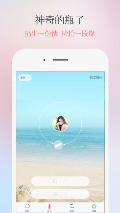 2、漂流瓶:不受限制的扔瓶子捞瓶子,寻找你的另一半。