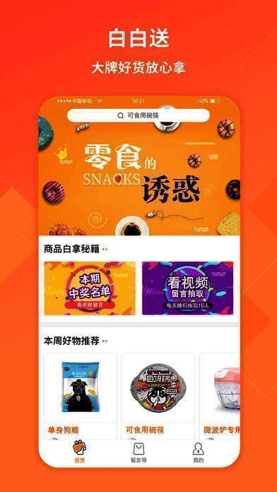 白白送APP不花一分钱带走自己心仪商品,这里每天都在发放任务,完成任务要求,就可以领取到高额的奖励,让您每天都可以收获到更多好礼。新用户注册可以领取超大好礼,好礼多多领不完。每天定时竞抢好货商品,各种精彩好货商品等您来抢,好货天天有,商品抢不完。可以对自己喜欢的商品进行好评,就可以得到此商品,每天好商品评不完,商品领不够。