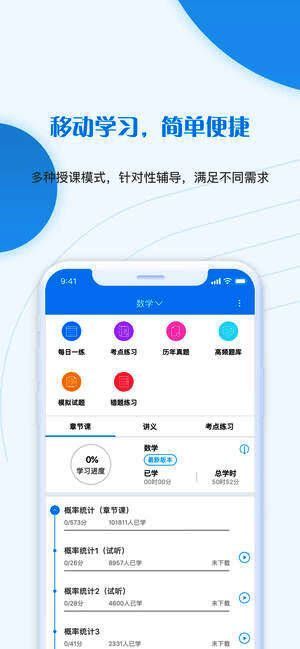 这是一款好用的考研学习应用。用看书30%的时间顺利高分通过研究生入学考试。一站式解决研究生考试刷题、听课两大需求。考研视频章节课由主流命题研究专家主讲,为大家免费提供大部分教材全面精讲课程。考研视频章节课由主流命题研究专家主讲,为大家免费提供大部分教材全面精讲课程。考研准题库可以根据十几万用户的答题情况,分析出高频考点和高频易错点,也能为你提供精准的能力评估报告,精准分析考点掌握情况。考研准题库是一款能够考研帮助你一路通关的考试宝典,通关宝典。