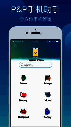 多功能手机助手,全方位护送您的手机。 设备详情:列出您手机的所有相关数据; 电力细节:分析手机的用电状况,合理使用手机,节省电池; 速度细节:实时测试您当前的网络速度,Wi-Fi信号在您手中; 存储详情:显示您手机的存储状态; 内存细节:分析手机当前的内存状态; 视频功能:精选视频库,内容丰富。