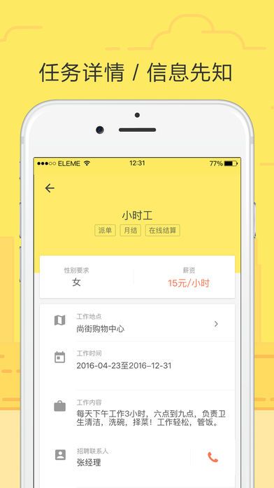 饿小闲通过线上找兼职的方式,到线下实体店铺工作实行端;