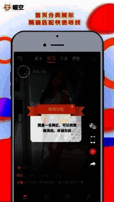 喵空app是一款在线社交应用,喵空app苹果版为用户打造一个网络红人通告平台,用户可以在这里快速寻找合适的网络红人,为商家提供更完善的通告服务,同时也为网络红人接通告提供一个便捷的平台,将商家与红人撮合在一起,快捷迅速的认识到身边乃至同城的好友。