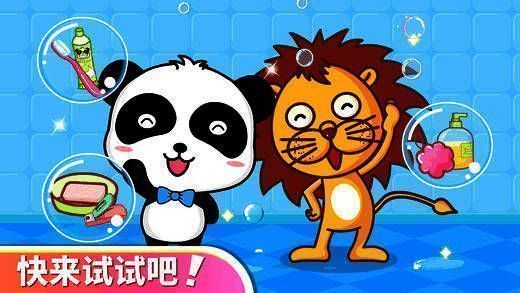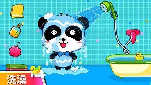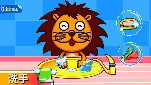 洗澡:哈哈,动物伙伴来洗澡,好多的肥皂泡泡,左扭扭,右扭扭,泡泡不见了,哇哦~还有blingbling的小星星~真漂亮,快来动动小手指,把你们的动物伙伴洗干净吧。