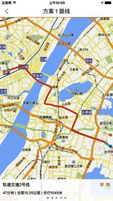3、换乘方案:换乘结果按距离/时间/地铁/换乘次数等排序,均显示行程时间;