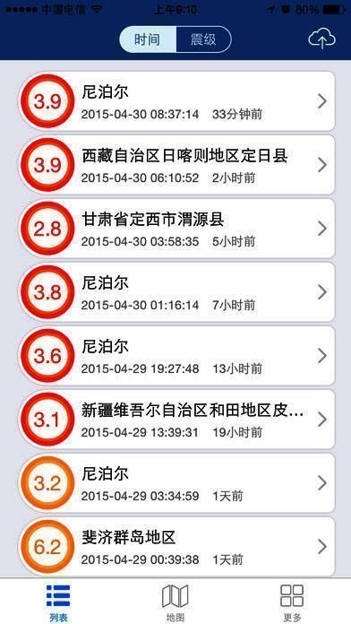 2、用户可以刷新获取最近30天内的地震信息;
