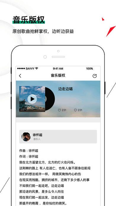 1、音乐版权:原创歌曲抢鲜掌权,边听边获益;