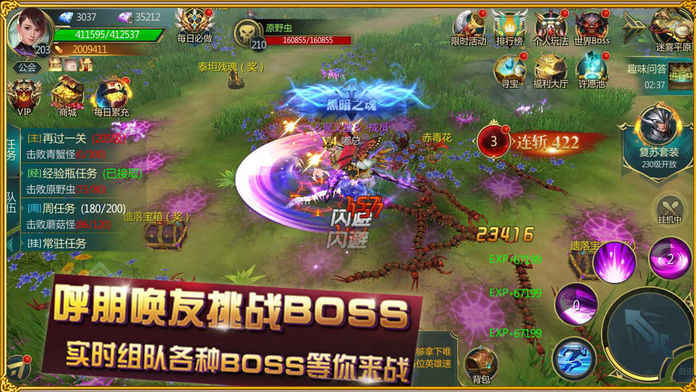 4、即时PK、世界BOSS、阵营攻防、人物养成一应俱全。