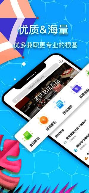 优多兼职app贴合年轻且富有活力的特点,专业为接自由职业者群体提供可靠的兼职信息。整合国内名企大厂的资源,让你在碎片时间,过无压力的生活。