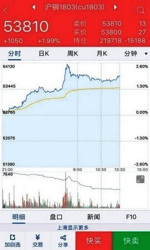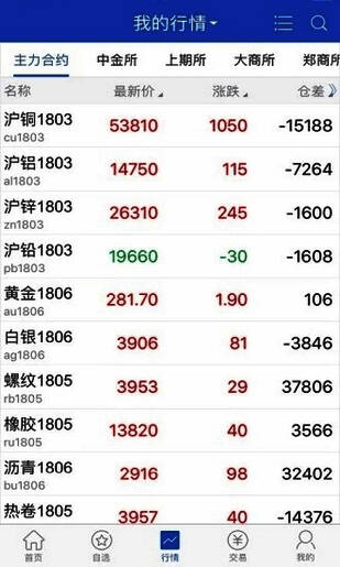 目前本软件可即时查看国内主要期货交易所各品种实时行情走势;