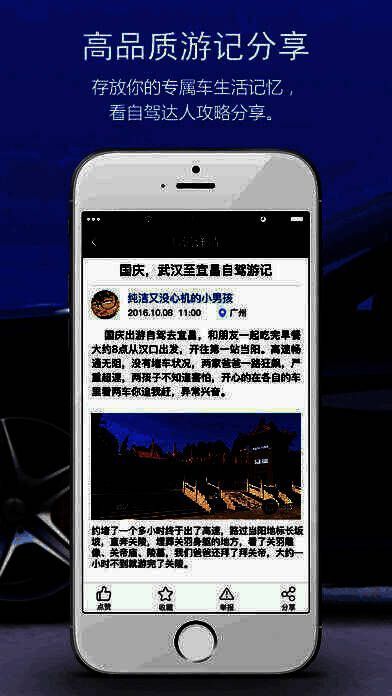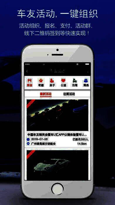 一键式活动组织:线上活动发起,报名,支付,线下二维码签到、车队位置共享等快捷实现。车友活动,一键组织;“我也要去”功能键,新活动一键生成。