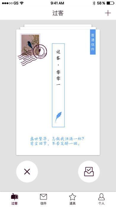 在这个喧嚣的世界,浮躁的人很多,是不是很向往以前以书会友的年代,不见面,通过书信认识对方,坦诚相待,体味君子之交的平淡!《过客》便是这样的一款以信会友轻社交软件,快来下载试一试吧!
