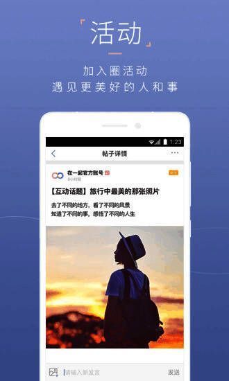 《在一起》这款软件将打破你原有的社交圈,开启另一个新世界。如果你想要交朋友或者寻找另一半就可以实时这款软件哦!广大的单身青年们赶紧下载,也许你的另一半就在这里。