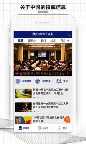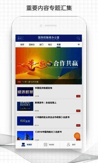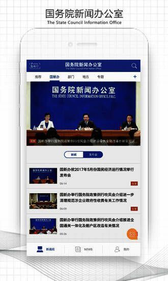 国新发布app是依托国务院新闻办公室新闻发布和各地方各部门新闻发布,面向社会公众及海外用户提供权威新闻发布的中英双语新媒体平台,设置新闻间、发布会、News、我的空间四大栏目,实时纵览中国权威信息,直击国务院新闻办公室、中央部门与地方每年上千场新闻发布会、吹风会,用中英文讲述中国最新发展变化,并为用户提供个性化信息服务。