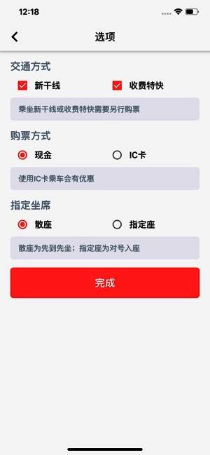 提供“早到达”、“少换乘”、“省票价”等多种出行方案,支持按交通工具、付费方式、座位种类等进行筛选。