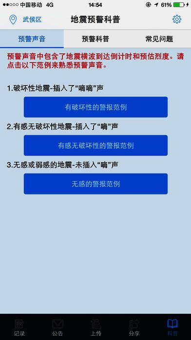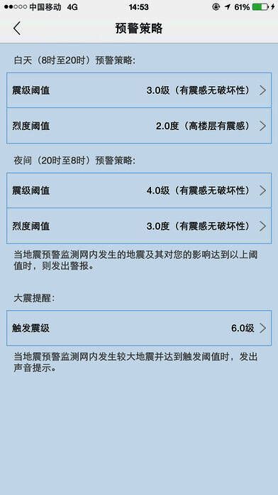 2、优化预警接收策略,区分白天和夜间策略,增加大震提醒功能;