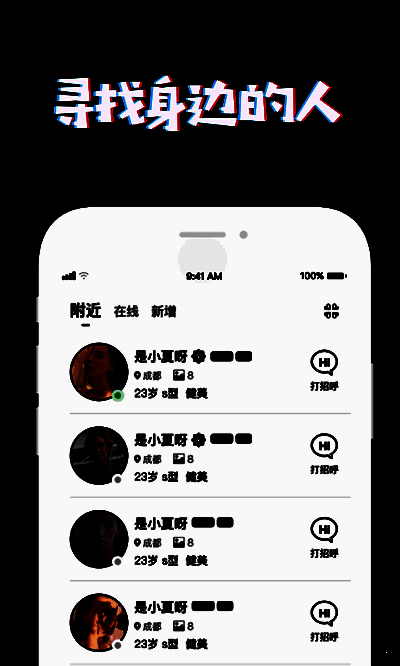 寻找身边的人,一键推荐符合用户喜好的各种类型好友,之和自己合得来的人交友