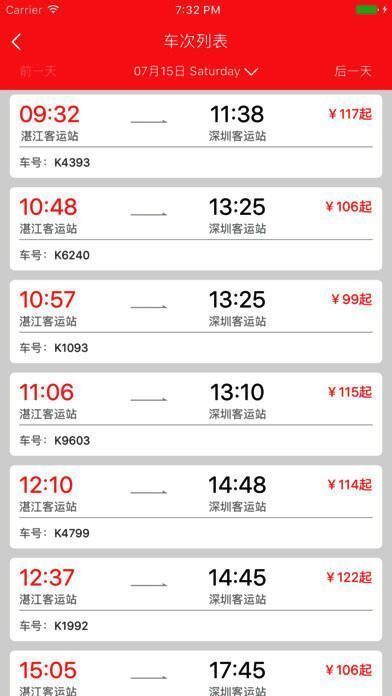 3、时刻表查询:汽车时刻表一键查询,票价、车型、行驶里程一目了然;