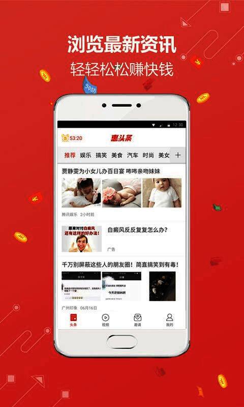1、让阅读有钱赚 一款实时资讯的头条APP:关心身边大小事,关心世界大小事,实时的新闻推送让你在弹指间了解最新资讯,在获得最新资讯的同时还能赚一把金币。