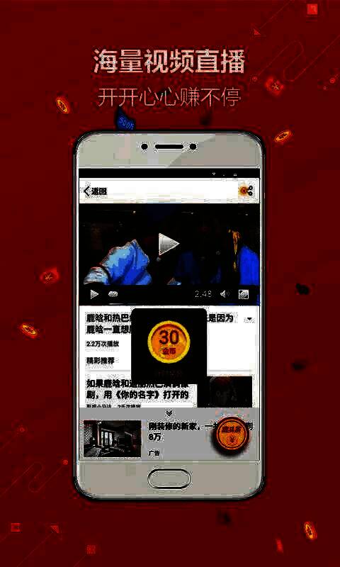 2、看视频赚金币,亿万精选视频等你来点:喜欢看电影,喜欢听音乐,或者休息的时候看看搞笑直播,这里有你需要的各种视频,看你喜欢的视频,简简单单就赚满金币。